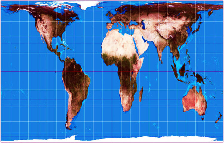 El mapa que estamos acostumbrados en Occidente es más centrado y se extiende el tamaño de los continentes cercanos a los polos. África y América del Sur son en realidad mucho más grandes. He aquí una representación más precisa del mundo, según el mapa de la proyección Gall -Peters, creada en 1885.